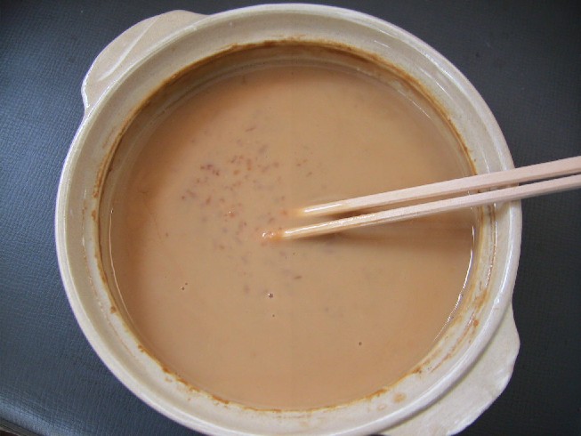 11月28日に、焼物の土鍋に(本来カメに仕込むことが望ましい)仕込んで、1ヶ月余で発酵が止まりました。いつも冷蔵庫の上に置き、外気よりは少し温かいかもしれないという程度の気温でした。
