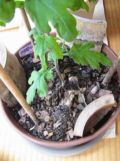 学生時代に『菊と刀』という本を知ってから30年。やっと菊作りの文化を体験することができました。しかし、猫の額のような庭には数鉢しか置けません。数鉢だけの菊作りですが大きな楽しみがあります。また、菊作りに関しましてはほとんどの知識を菊作り・園芸関連のHP等を参考にしています。HP等を開設してある方々のご厚意にあつく御礼申し上げます。