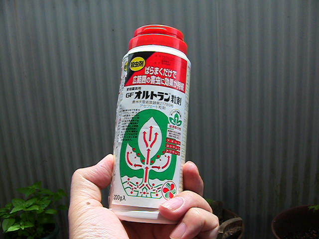 害虫予防のため、オルトラン粒剤を根の周辺にパラパラと蒔きました。