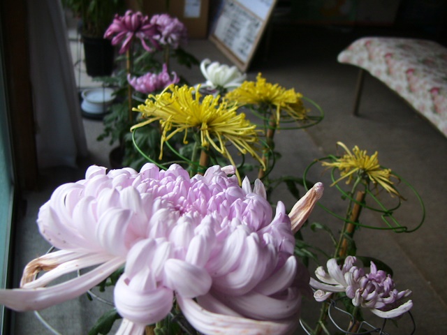 大輪菊三本仕立ては、何とか咲きましたが、やはり差芽で失敗して、思い通りの菊作りができませんでした。