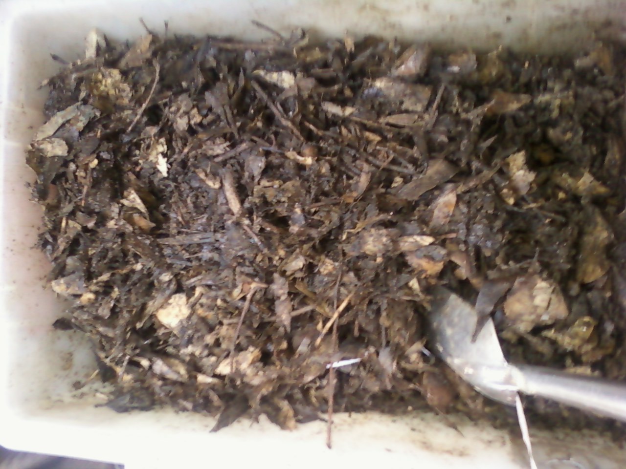 昨年のケヤキの落ち葉中心の腐葉土が余っていたので、それを混ぜて使うことにした。