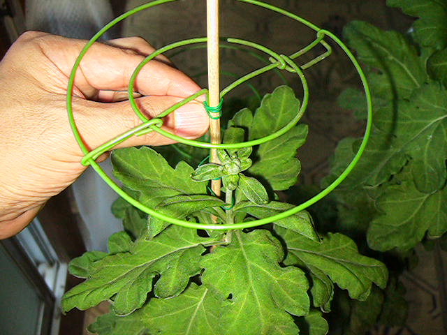 また、比較的小さな蕾は、茎がまだまだ伸びますので、輪台を蕾より3~4cm上に取り付けています。
