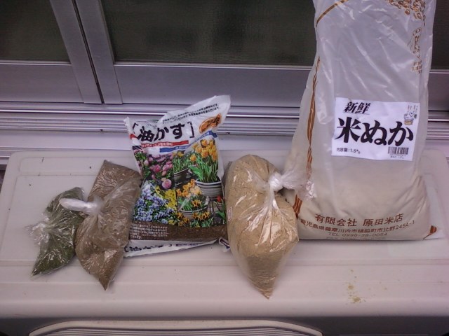 これに、後日「腐葉土」「燻炭」「赤玉土」などを混ぜて「培養土」として使います。