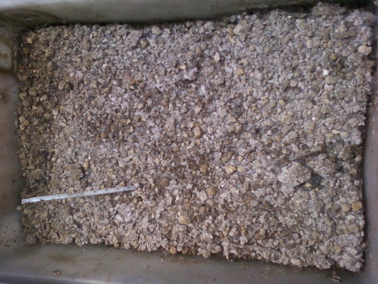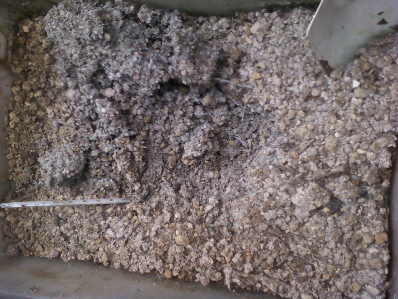 4月16日までに、30℃以上に発酵し、3・4日に1度、2回ほど切り返しをすると、菌糸が全体に繁殖して、まんべんなく麹状になりました。