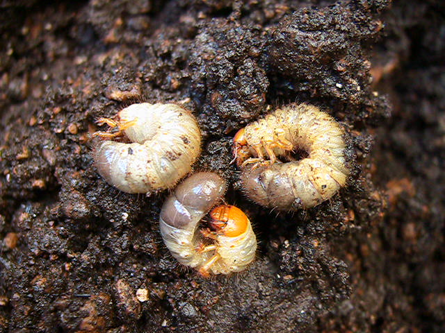 成長の悪い苗の原因は、コガネムシの幼虫が、9月に2匹、10月末に「オルトラン」を撒くとまた1匹出てきました。