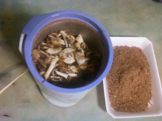 ミキサーで粉砕して、後は冷蔵庫で保存。