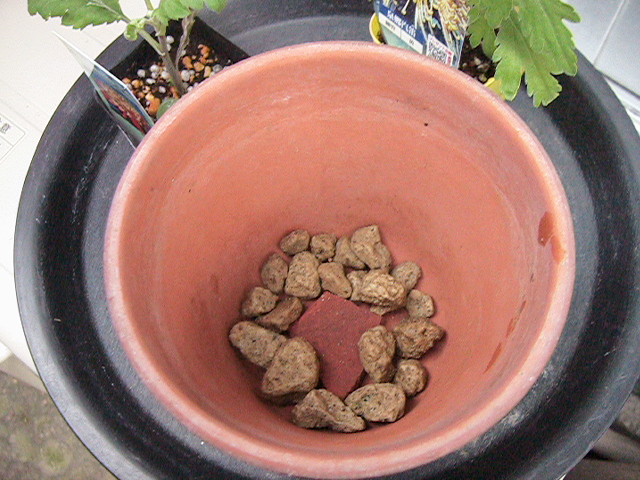 下にいろんな器を置いているのは、アリやナメクジの侵入を防ぐためです。