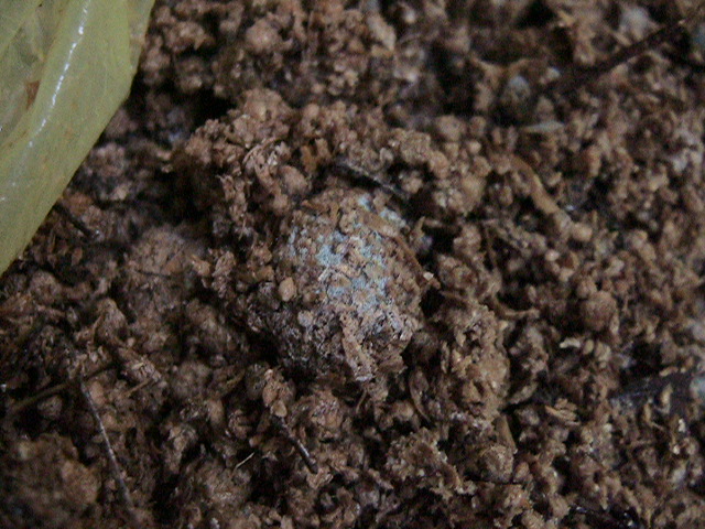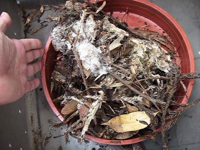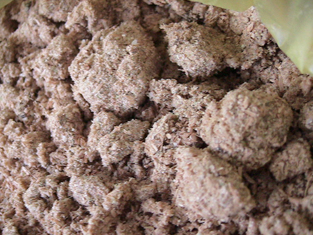 糠の塊(かたまり)に灰色の菌糸が見えるようになってきました。(下2枚の写真)