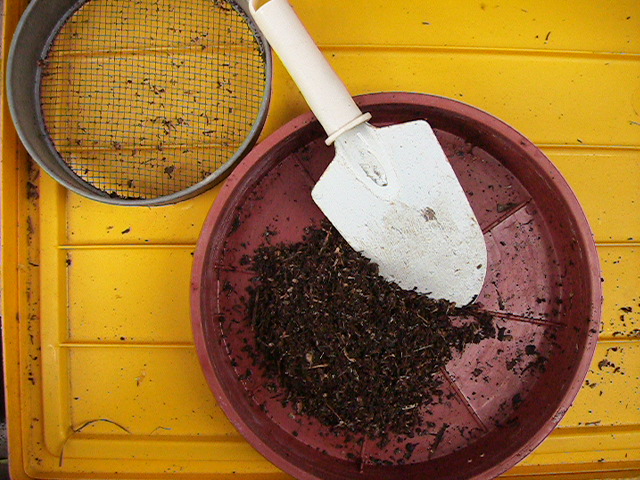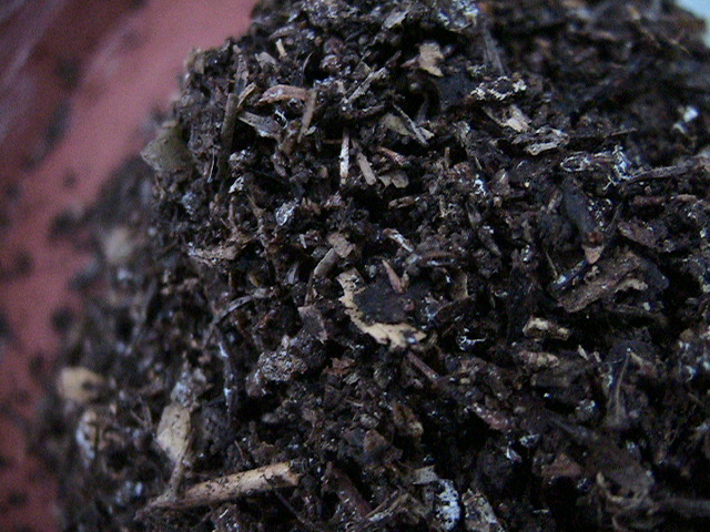 (↑)土着菌の菌糸のかたまりをほぐして、