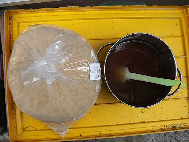 ▼2月23日(↑)米ぬか2kgと、片栗(かたくり)液1.5ℓを準備しておきます。