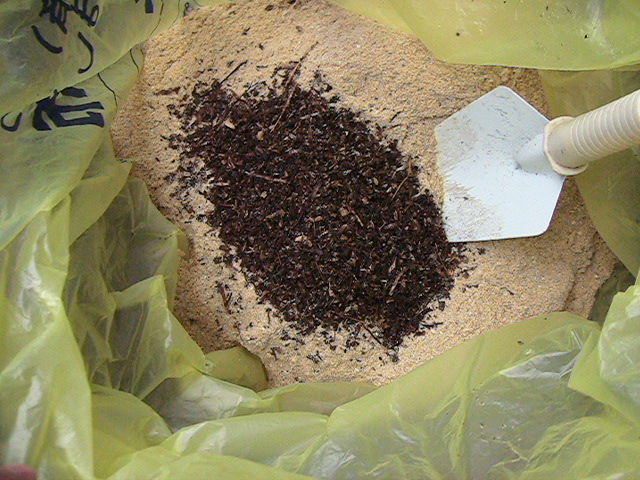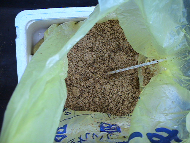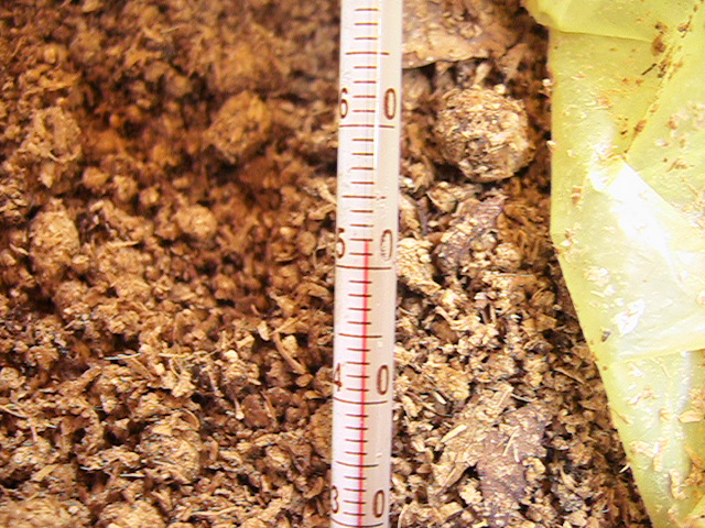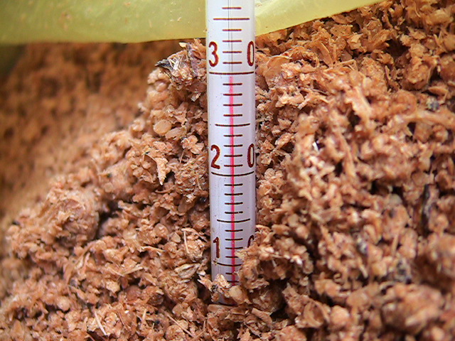 乾燥もだいぶ進み、臭気も少なくなってきたので、微生物の活発な活動が落ち着いてきたのであろうと推測しています。