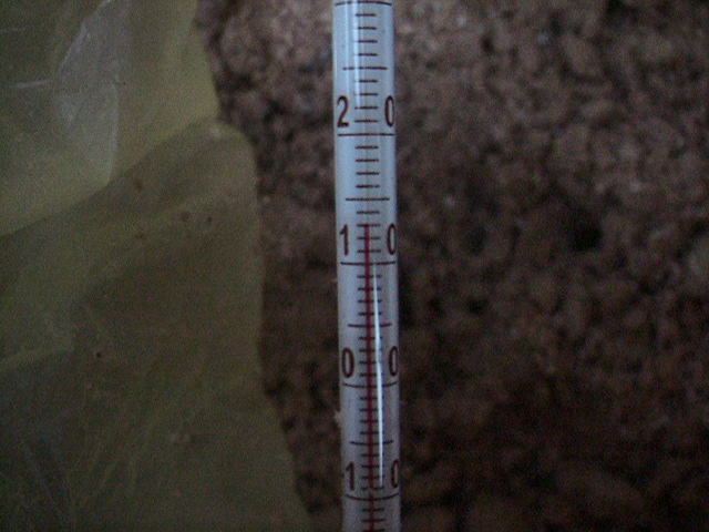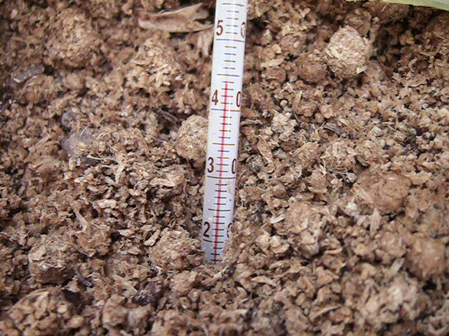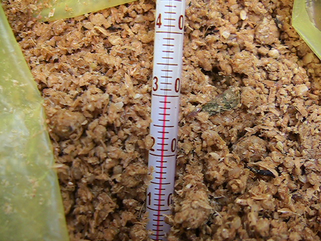 ペットボトル湯たんぽを入れた翌朝、30℃台になっていました。3月5日頃はペットボトル湯たんぽを入れても、2~3日は40~50℃を保つことができていましたが、そこまでの盛んな発酵はしていません。