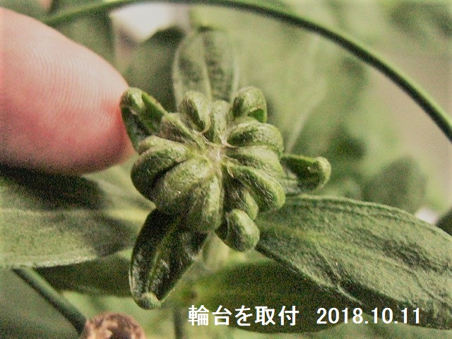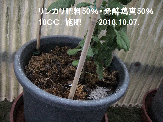 しかし、今年栽培方法といいますか施肥のことについて特に変えていたことは、6月の定植(8~9号鉢への鉢上げ)の時に発酵油粕の親指大の1~2cmの大きさの発酵油粕を3個ほど入れていたことです。