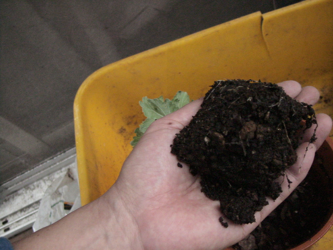 培養土は、去年の残りです。今年の腐葉土よりも、少しでも十分に発酵していると考えられるので…。
