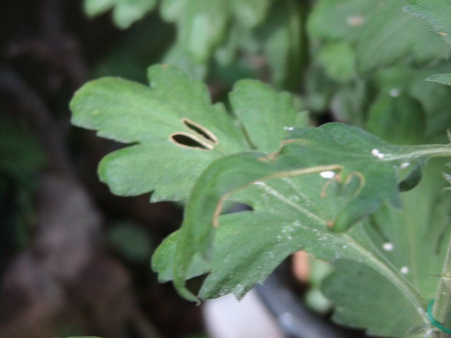 (後日記:葉っぱに水で霧吹きをして、オルトラン粒剤をかけると食べなくなった。)