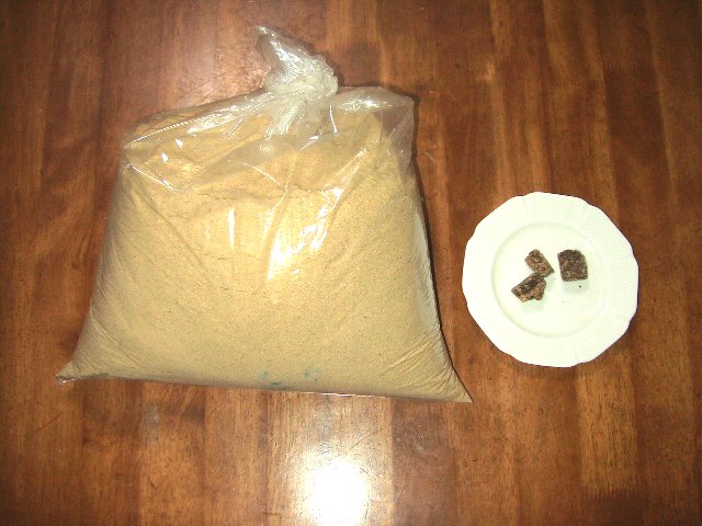 材料:米糠2㎏・水500CC(湯を冷まして)・黒砂糖30g(湯が熱いうちにうちに溶かす)・土着菌液(100倍、冷まし湯に入れる)