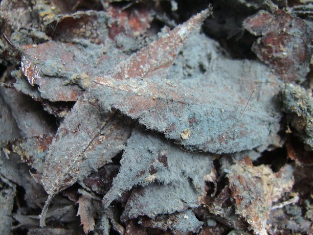 発酵の進んだところは、アオカビ色で、白い菌糸の部分は発酵途中のようです。