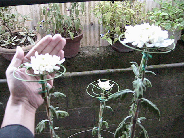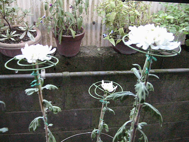 学生時代に『菊と刀』という本を知ってから30年。やっと菊作りの文化を体験することができました。しかし、猫の額のような庭には数鉢しか置けません。数鉢だけの菊作りですが大きな楽しみがあります。また、菊作りに関しましてはほとんどの知識を菊作り・園芸関連のHP等を参考にしています。HP等を開設してある方々のご厚意にあつく御礼申し上げます。