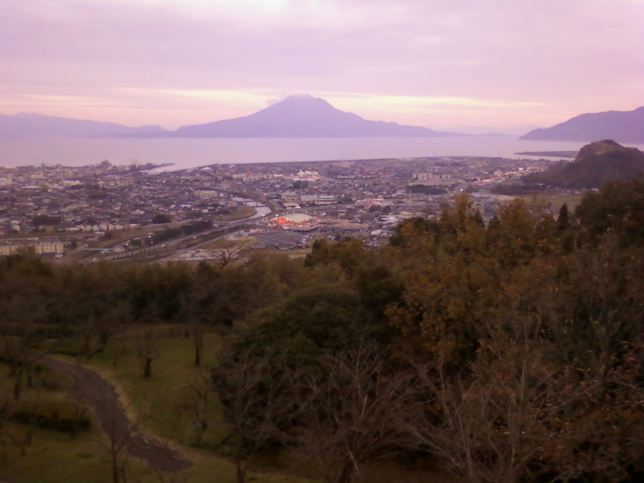 土着菌の白い菌糸のかたまりを採集した公園からの風景をアップします。桜島が見える眺望の良い公園です。