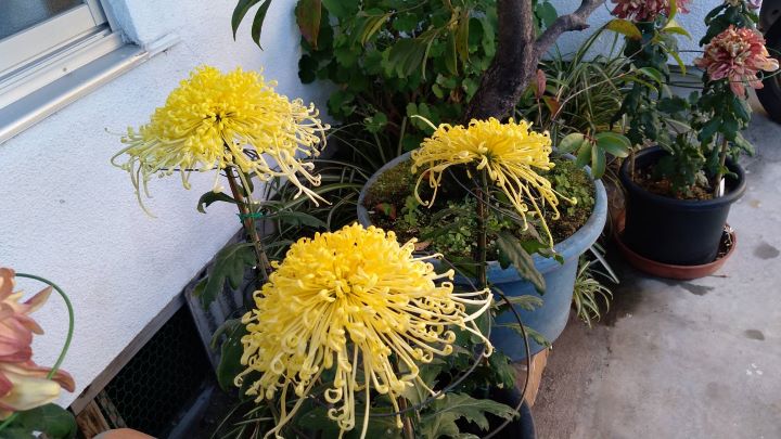 学生時代に『菊と刀』という本を知ってから30年。やっと菊作りの文化を体験することができました。しかし、猫の額のような庭には数鉢しか置けません。数鉢だけの菊作りですが大きな楽しみがあります。また、菊作りに関しましてはほとんどの知識を菊作り・園芸関連のHP等を参考にしています。HP等を開設してある方々のご厚意にあつく御礼申し上げます。