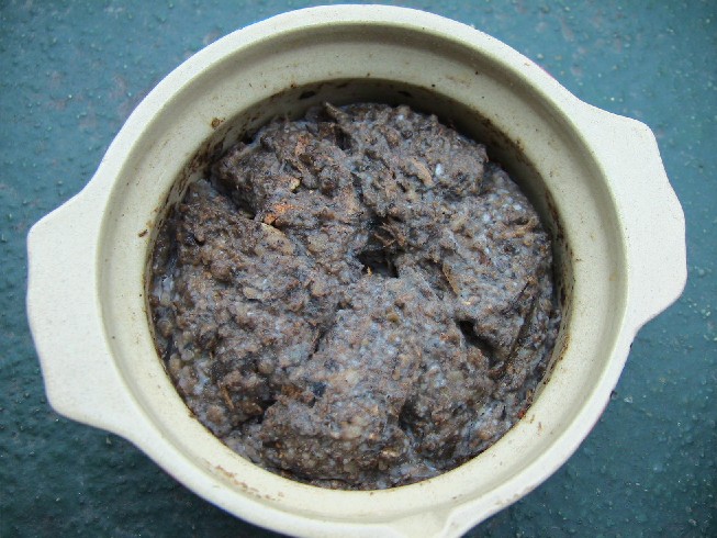 IMG_1953.JPG 土着菌培養を瓶ならぬ小型土鍋に仕込んで10日ほど、発酵しているのか酢味噌のような臭いがします。
