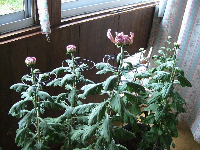 学生時代に『菊と刀』という本を知ってから30年。やっと菊作りの文化を体験することができました。しかし、猫の額のような庭には数鉢しか置けません。数鉢だけの菊作りですが大きな楽しみがあります。また、菊作りに関しましてはほとんどの知識を菊作り・園芸関連のHP等を参考にしています。HP等を開設してある方々のご厚意にあつく御礼申し上げます。