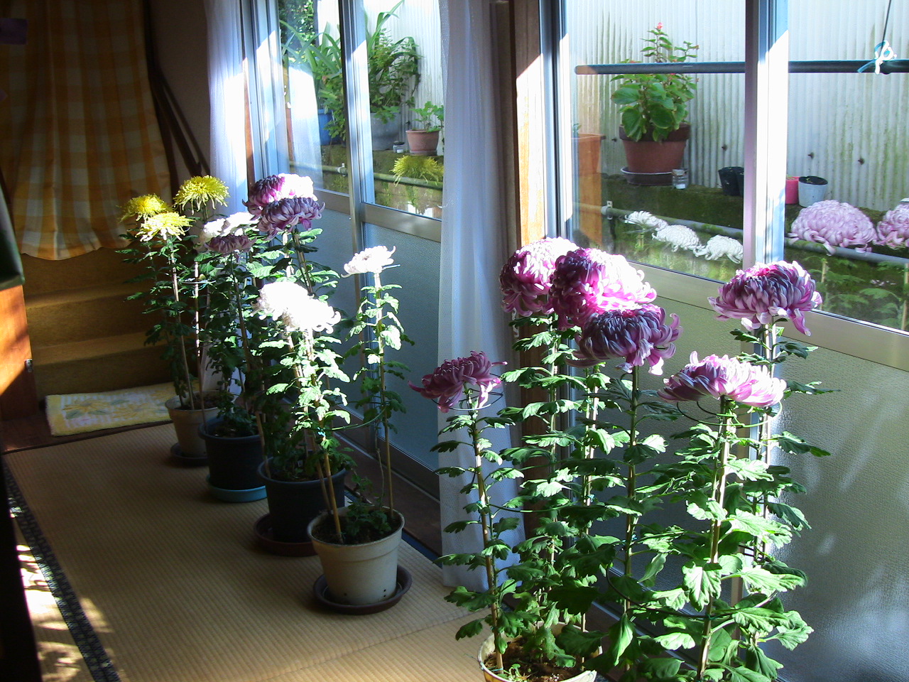 学生時代に『菊と刀』という本を知ってから30年。やっと菊作りの文化を体験することができました。しかし、猫の額のような庭には数鉢しか置けません。数鉢だけの菊作りですが大きな楽しみがあります。また、菊作りに関しましてはほとんどの知識を菊作り・園芸関連のHP等を参考にしています。HP等を開設してある方々のご厚意にあつく御礼申し上げます。