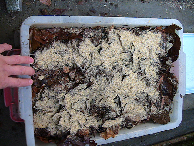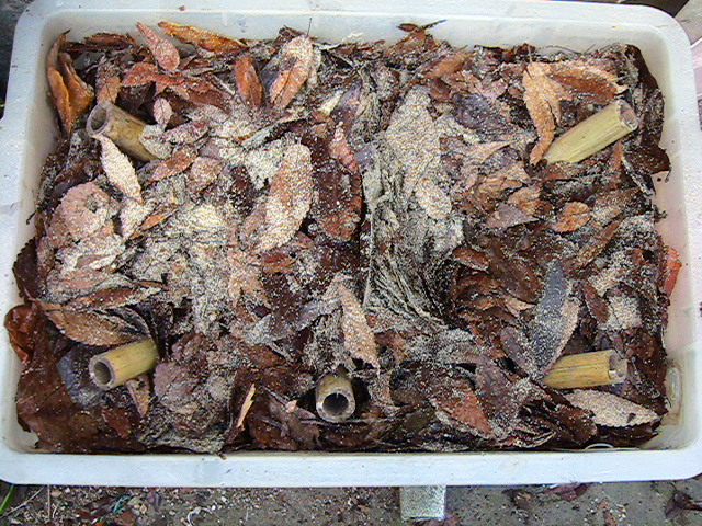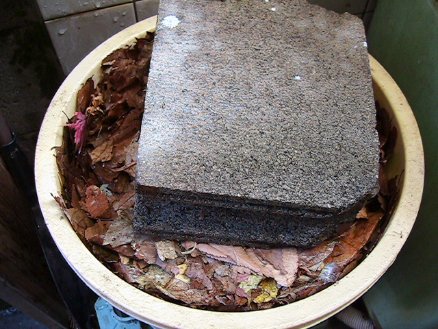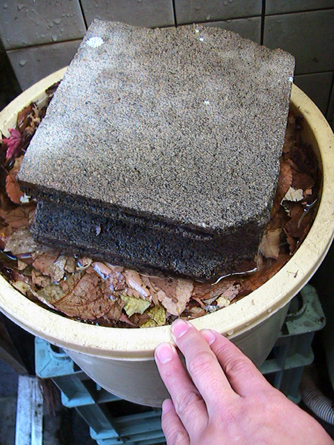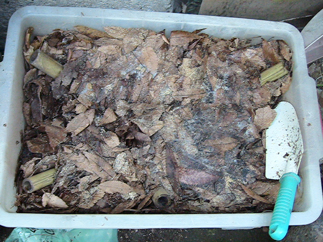 ▼1/11 水に漬けていた枯れ葉を腐葉土に仕込む。