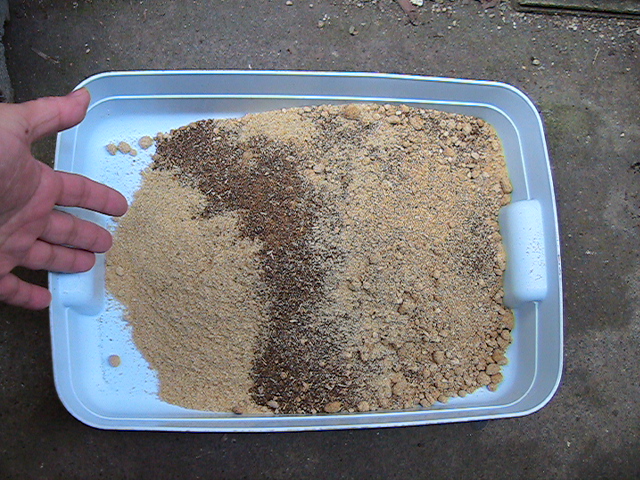 糠・発酵糠・油粕を混ぜて、枯れ葉と5層ほどのサンドイッチ状態に積み上げました。仕込んだプラスチック製のケースは約30ℓ入ります。(プラスチックケースの側面・底には通気性を良くするため直径5ミリほどの穴をたくさん開けています)