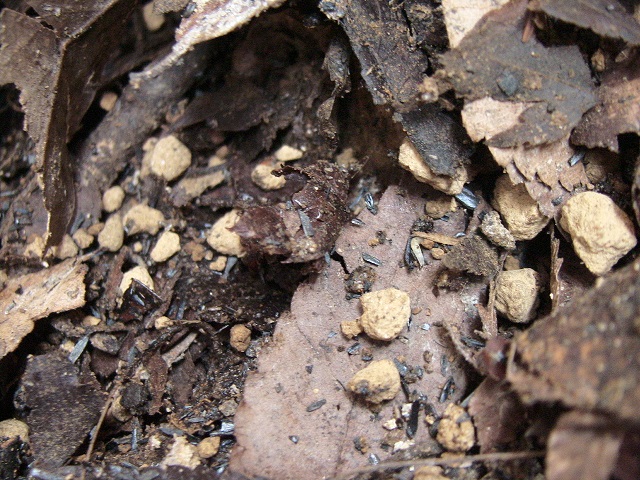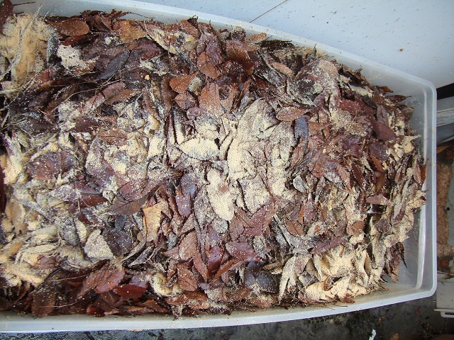 前日さわってみた物とは別のプラスチックケースは、雨水が少々かかるところに置いていたためか、湿気が多く発酵の進み具合の悪いところが多くありました。