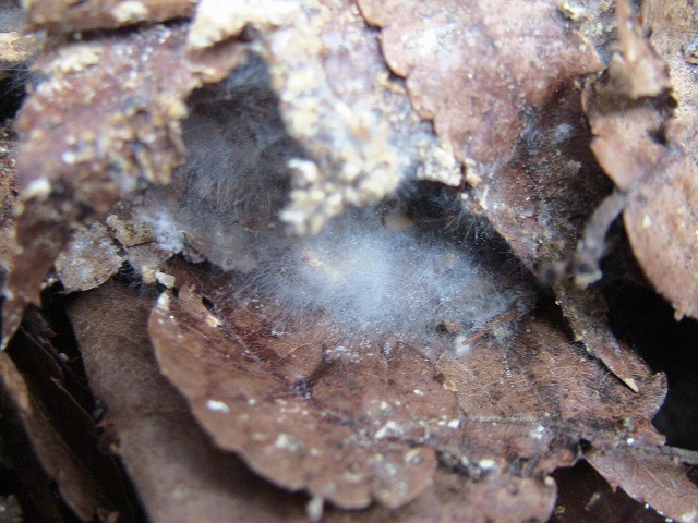 湿り気と空気が全体的に行きわたり、内部を掘り返すと、白い菌糸がはびこっています。